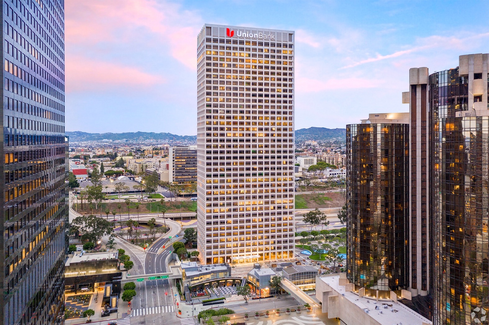 Waterbridge Capital struck a deal to buy Union Bank Plaza in Los Angeles for $155 million after another buyer backed off a higher-priced acquisition of the 40-story office tower amid rising interest rates. (Jeremiah Unruh/CoStar)